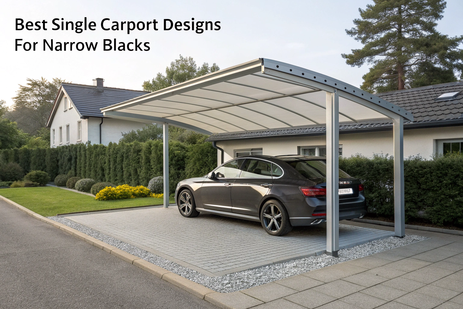 Attached carport designs work particularly well for narrow properties because they utilize your existing house wall as one side of the structure, reducing the overall footprint. We customize carport width to match your driveway dimensions while meeting minimum clearances for door opening and passenger access. Freestanding narrow carports can slot into side yards or between existing structures where wider double carports won’t fit.