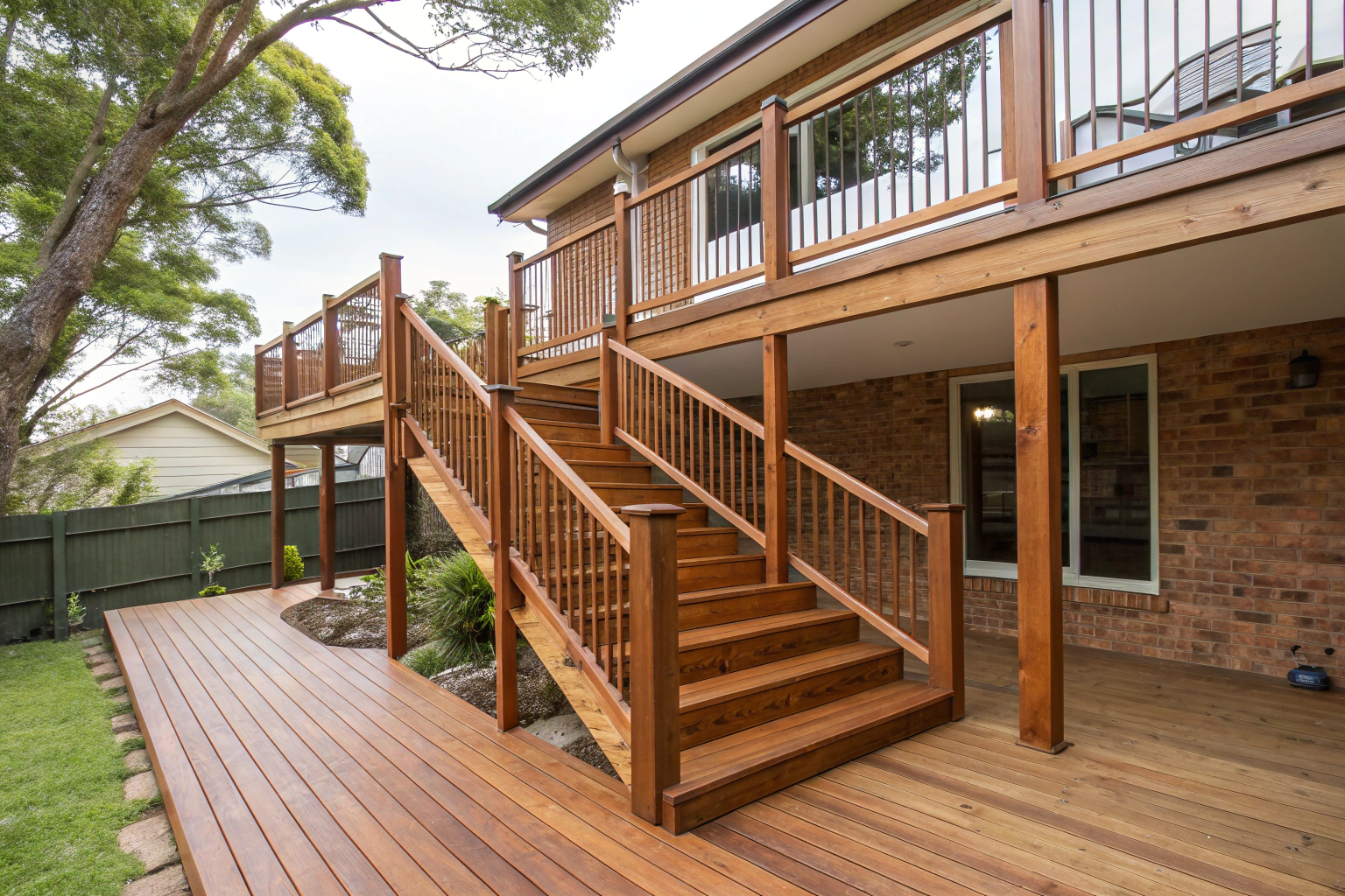 Deck construction adheres to Queensland Building Code requirements covering structural load capacity, railing height specifications, and stair dimensions for residential applications. We build decks meeting minimum load ratings of 2.5 kPa for residential outdoor areas, increased specifications for commercial or heavy furniture installations, and engineered solutions where site conditions demand additional structural capacity.