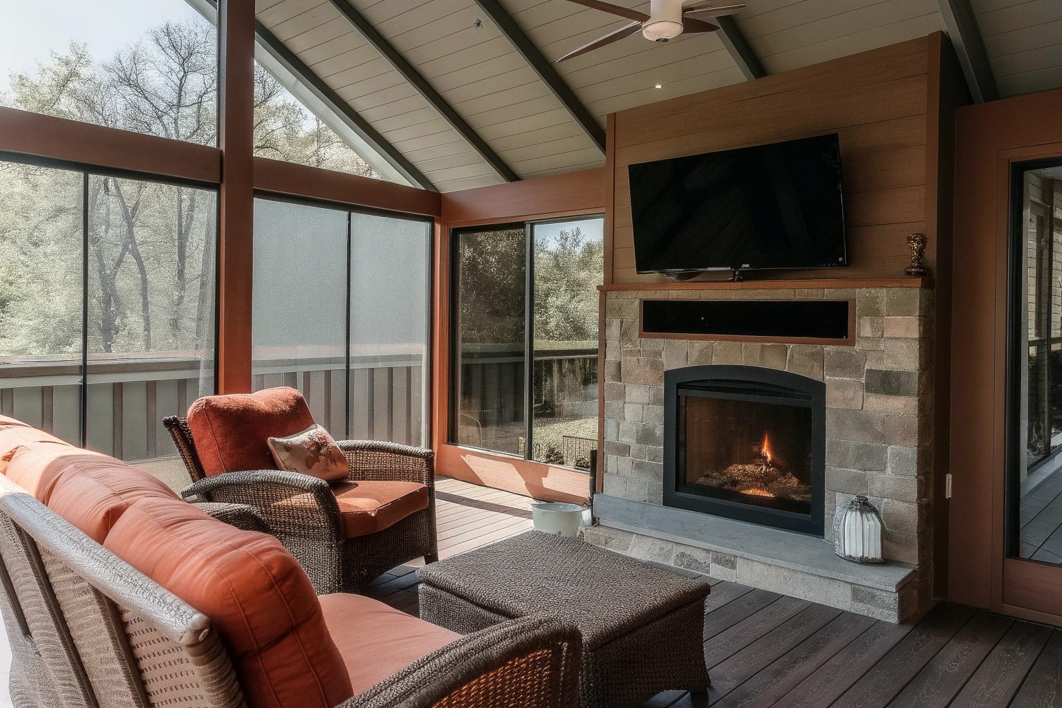 Door and access panel integration includes sliding screen doors for main entries, hinged panels for walk-through areas, and pet doors where needed. We design access points that maintain screening integrity while providing convenient entry and exit. Your configuration depends on how you use the space, wind direction, and which sides need the most protection.